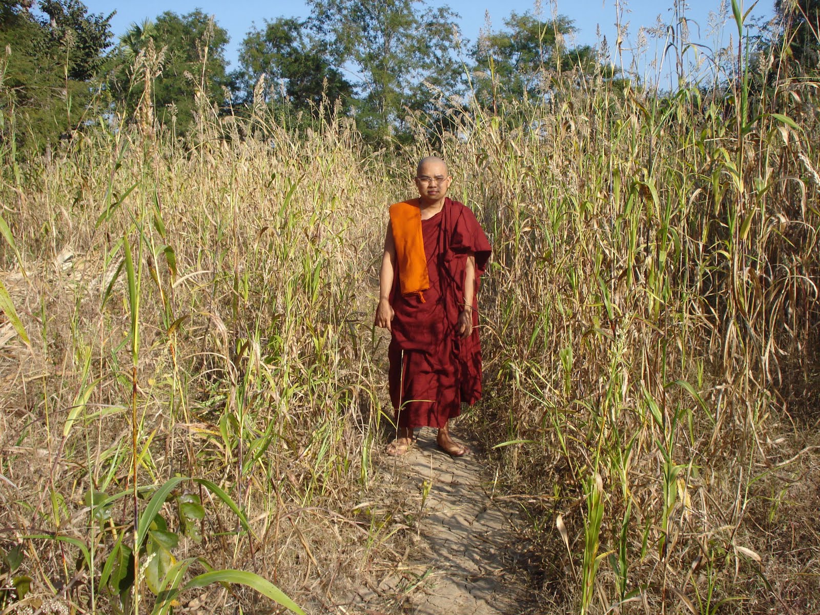 ေန႔လည္ ၂ နာရီေလာက္ မည္သည့္ဧည့္သည္ကိုမွ် အေတြ႔မခံပဲ တပါးတည္း အရိပ္အာ၀ါသေကာင္းေသာ သရက္ေတာႀကီးအတြင္း တရားအား ထုတ္ေနေသာဆရာေတာ္အား ေနာက္တေခါက္ စာေရးသူတို႔ ေရာက္သြားခ်ိန္တြင္ မဖူးျမင္ရေသာေၾကာင့္ ဆရာေတာ္ရွိရာ သရက္ေတာႀကီးအတြင္းပိုင္းအထိ လိုက္သြားကာ အားပါးတရ ဖူးေမွ်ာ္ခဲ့၏၊ သစ္ပင္ရိပ္ ကလည္း ေအးစိမ့္ေန၏၊ ငွက္ေအာ္သံ မ်ိဳးစုံ ၾကားရၿပီး ေတာ္ေတာ္ စိတ္ၾကည္ႏူးစရာပါေပ၊ ေသခ်ာၾကည့္လ်င္လူတရပ္စာ မလြတ္ေသာ ထန္းလက္တဲကုပ္ေလးအတြင္း၌ သကၤန္းေရာ င္ေလး ျမင္ရေပမည္၊ ထုိကား ဆရာေတာ္၏ ပုံေတာ္ျဖစ္၏